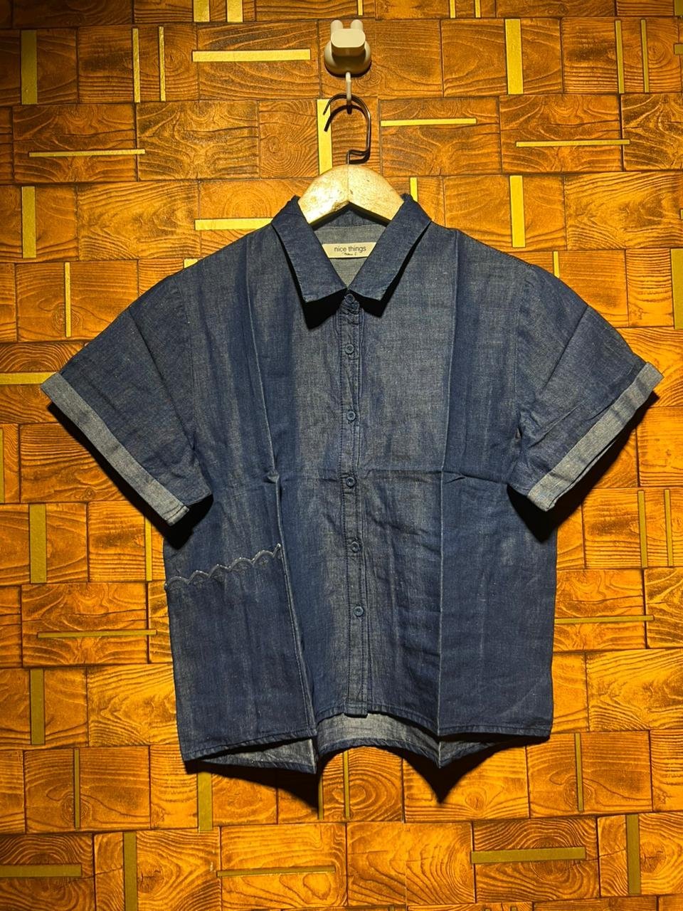 The Crop Top (Denim) in Large brings a rugged, fashionable edge to the classic crop top silhouette, perfect for a bold street-style look. Despite its denim appearance, the fabric is engineered with a touch of stretch to ensure it remains comfortable and allows for a full range of motion. The larger size provides a cool, oversized aesthetic that pairs perfectly with high-waisted joggers or skirts. This piece is a standout fashion statement that successfully merges durable workwear aesthetics with contemporary cropped styling.