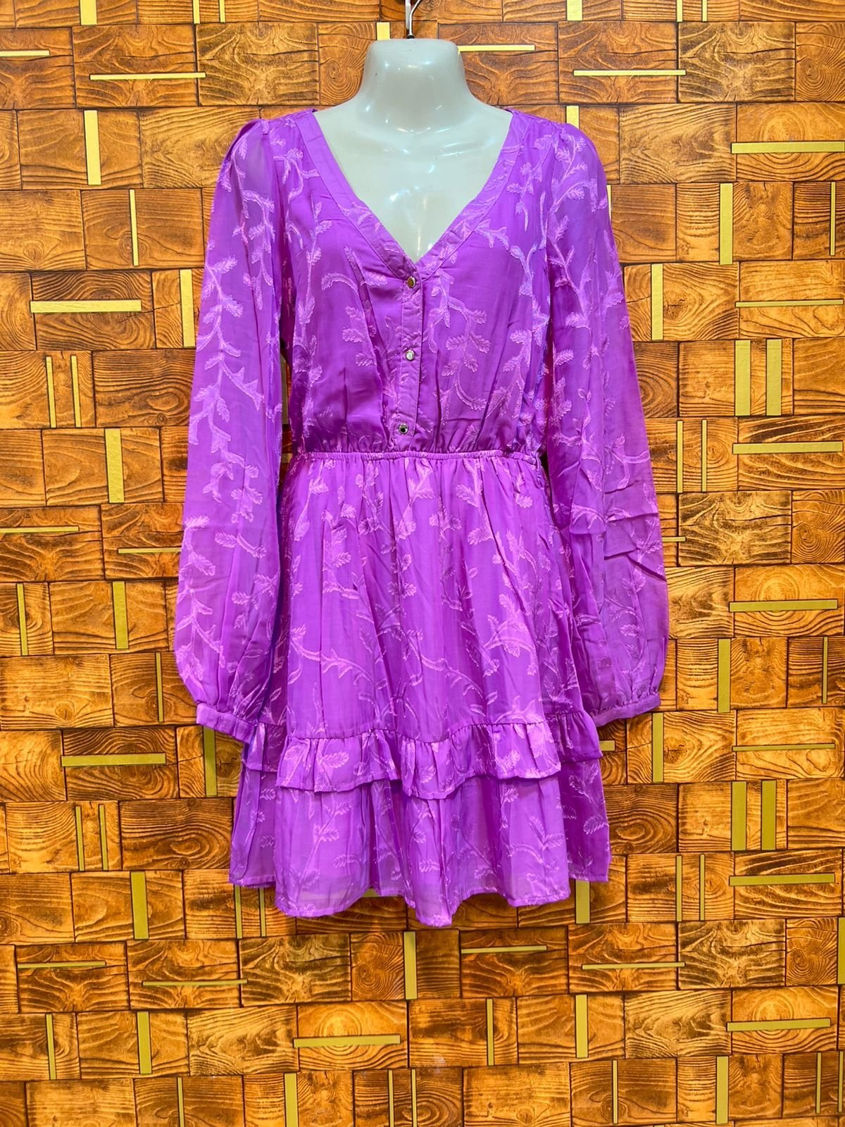 The Long Top in Small Chiffon is a more compact variation with a 35-inch length and an 18-inch chest. This size is tailored for a very narrow frame, ensuring the fabric doesn’t overwhelm the wearer. The chiffon’s delicate weave provides a soft, romantic aesthetic that is synonymous with modern feminine grace.